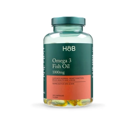 Omega 3 Fish Oil осигурява по-висока абсорбция от тялото на Омега-3 ЕРА и DHA мастни киселини. То е богато на омега 3 мастни киселини, източник на витамини А и D, които допринасят за нормалното функциониране на имунната система. Витамин А е важен и за здравето на кожата, докато витамин D участва в поддържането на здрави кости и мускули. Есенциалните мастни киселини трябва да се приемат чрез храна или хранителни добавки, тъй като те не се произвеждат в организма. Ейкозапентаеновата киселина (EPA) и докозахексаеновата киселини (DHA) са есенциални омега-3 мастни киселини, които най-често се срещат в рибеното масло. Докозахексаеновата киселина поддържа нормалното зрение и функцията на мозъка. В комбинация с EPA, DHA допринася и за по-здраво сърце. Благоприятен ефект се постига с дневен прием от 250 мг DHA и EPA. Противовъзпалителните свойства на омега-3 мастни киселини предпазват от тежки здравословни заболявания, сърдечно-съдови заболявания, рак, диабет тип 2. Същевременно подобряват циркулацията на кръвта в организма, повишават здравината на клетъчната мембрана, участва в процеса на подобряване на кръвното налягане, спомага при алергични и възпалителни реакции, увеличава нивата на хормона на растежа. Омега-3 концентрираното рибено масло на Holland&Barrett съдържа чисто рибено масло, молекулярно дестилирано за отстраняване на живак, тежки метали и диоксини. Особено полезно за тези, които не успяват да се хранят с риба поне два пъти в седмицата Особено полезно за тези, които не успяват да се хранят с риба поне два пъти в седмицата.