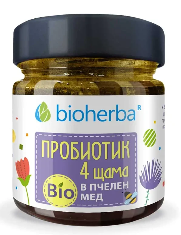 - Пробиотик 4 щама в Био Пчелен мед е комплексна формула за стомашен комфорт и имунитет.